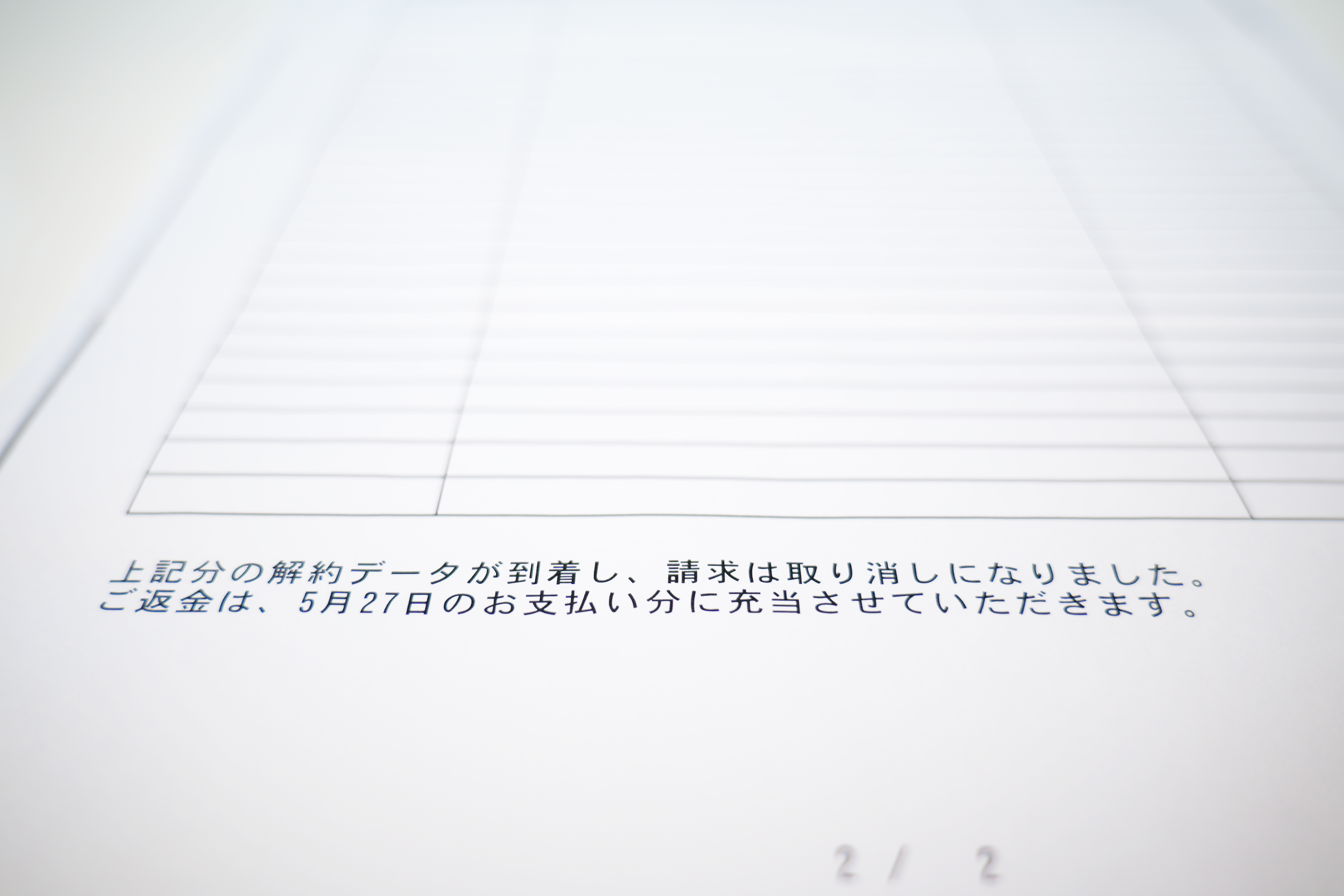 上記分の解約データが到着し、請求は取り消しになりました。