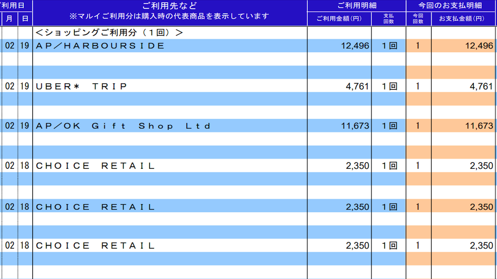 VISA加盟店名「CHOICE RETAIL」が『AT HOPカード』購入に該当する利用明細です